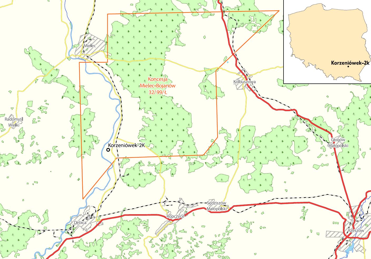 Gazowy odwiert Korzeniówek-2K zlokalizowany jest w miejscowości Pustków w powiecie dębickim na Podkarpaciu. Prace poszukiwawcze gazu ziemnego Oddział Geologii i Eksploatacji PGNiG rozpoczął tutaj pod koniec 2017 roku, odwiercając pierwszy otwór – Korzeniówek-1K. Uzyskany przypływ gazu ziemnego wysokometanowego jest typowy dla obecnej w tym rejonie struktury geologicznej składającej się z utworów miocenu zapadliska przedkarpackiego.