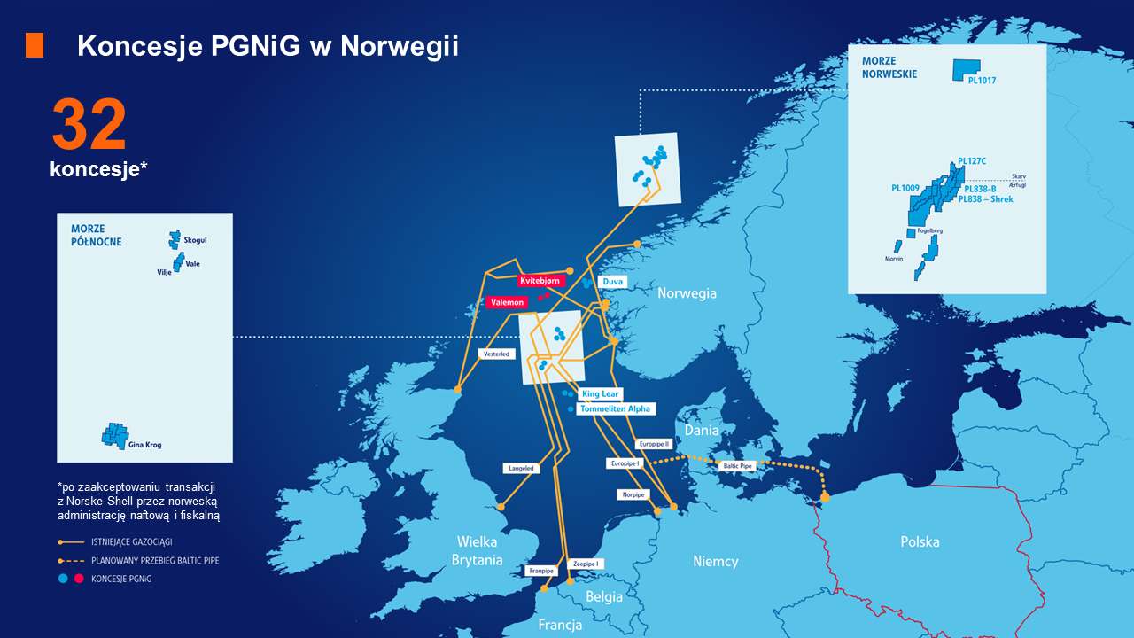 Umowa z Shell musi zostać jeszcze zaakceptowana przez norweską administrację naftową i fiskalną. Po sfinalizowaniu transakcji, PGNiG Upstream Norway powiększy portfolio koncesji, w których posiada udziały, o 4 kolejne koncesje i będzie posiadać udziały w sumie w 32 koncesjach na Norweskim Szelfie Kontynentalnym. Intensyfikacja akwizycji złóż w ciągu czterech ostatnich lat pozwoliła Spółce zwiększyć jej zasoby gazu ziemnego i ropy naftowej z 80 mln do ponad 200 mln boe obecnie.